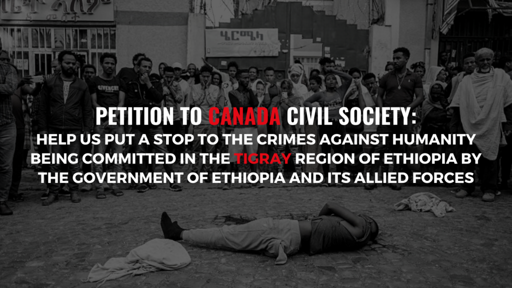 We appreciate that Canada, as part of the G7, has joined in “strongly condemned the killing of civilians, indiscriminate shelling and forced displacement of the residents of Tigray and Eritrean refugees” and emphasized that “the G7 members stand ready to support investigations into human rights abuses. However, urgent action is needed as the population of Tigray continues to suffer and, now, widespread famine looms. We thus ask the Canadian civil society to join us in: